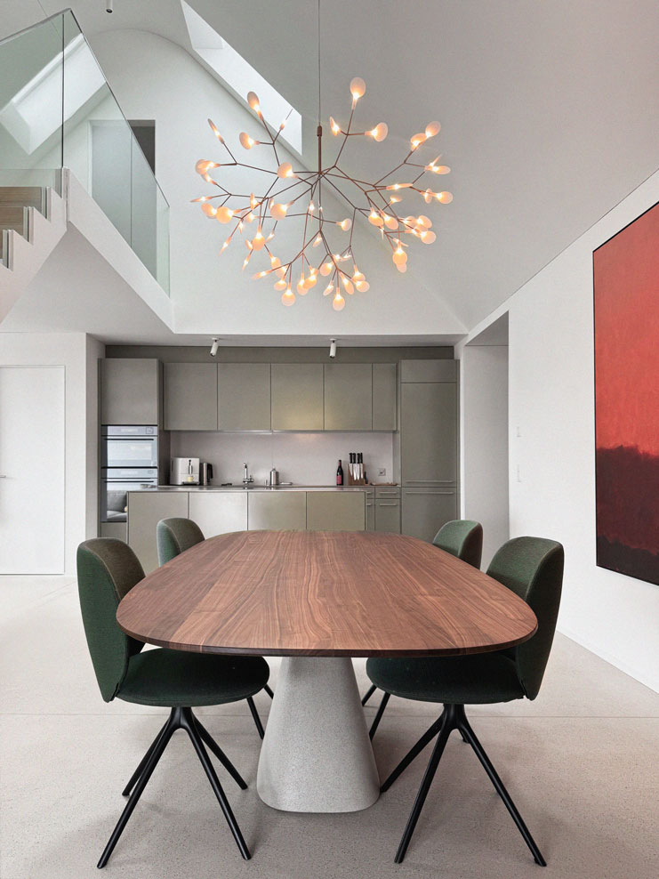 Gegensätze müssen ausgearbeitet werden, damit Spannung entstehen kann. Das gilt für innen und für aussen. Die Architektur des Hauses ist grundsätzlich zurückhaltend. Mir gefällt jedoch ein architektonisches Prinzip aus dem 19. Jahrhundert – die repräsentative Fassade. Wir gestalten mit jadegrünen Spitzprofilen, auf denen es ein Lichtspiel geben wird. Das bringt eine schöne Lebendigkeit.